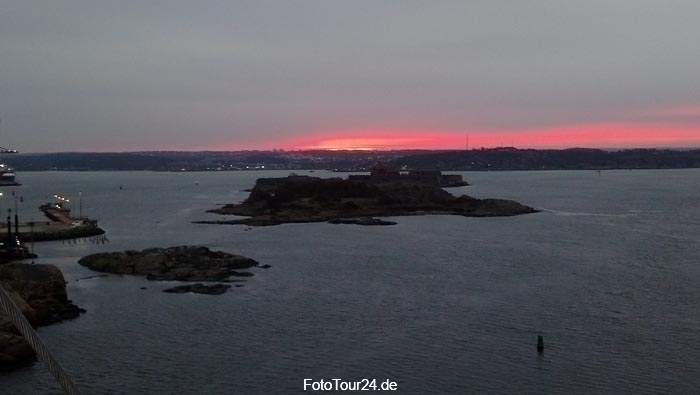 Nur eine Anlaufstation gab es in Schweden, die zweitgrößte Stadt des Landes hat aber auch einiges zu bieten. Vor allem wieder phantastisches Wetter fanden wir in Göteborg vor. Gleich zur Anfahrt gab es einen tollen Sonnenaufgang und ein herrliches Spiegelbild der AIDAmar in den Fenstern des Eingangs zum Volvo-Museum. Das ist hier am Hafen direkt bei einem der Werke und etwas außerhalb der Stadt. Hier mussten wir also erst einmal auf den Bustransfer setzen, der uns aber problemlos in die City brachte. Herrlich ist hier die entspannte und ruhige Atmosphäre, da der Individualverkehr weitestgehend ausgesperrt wird. Aber Busse und Bahnen verkehren in einer hohen Frequenz und die Verbindungen scheinen optimal zu sein. Macht Spaß hier!